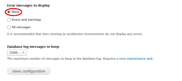 It is recommended that sites running on production environments do not display any errors.
