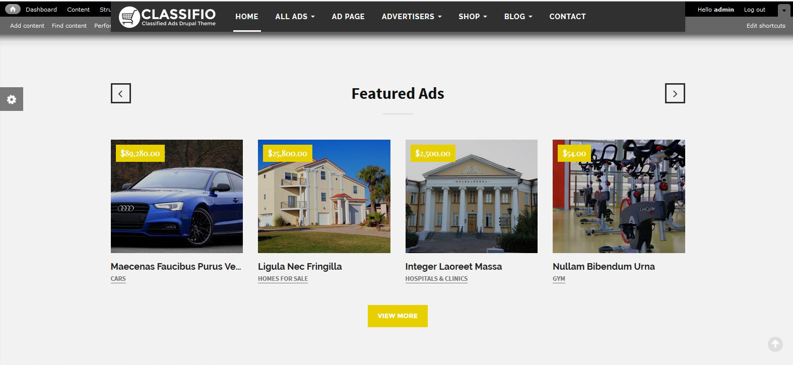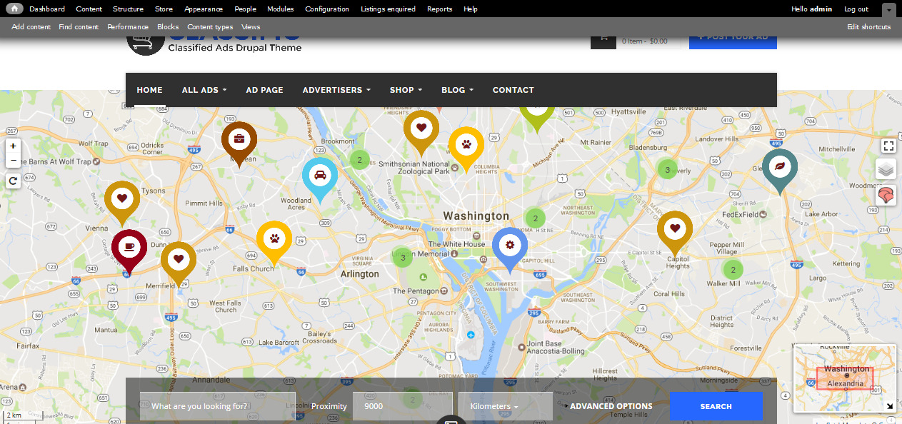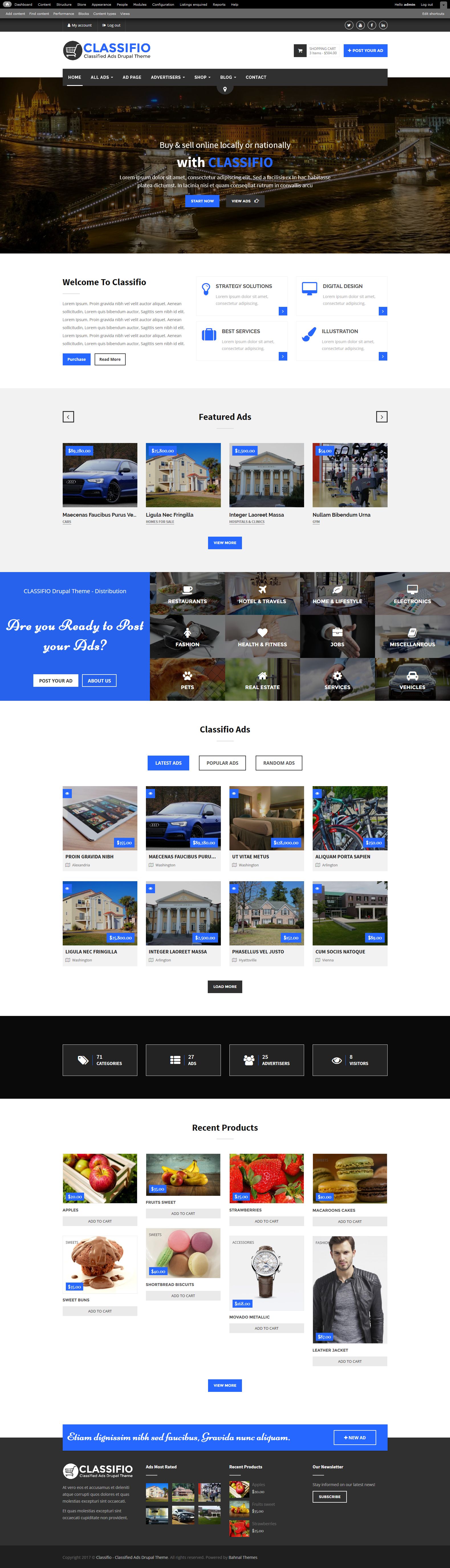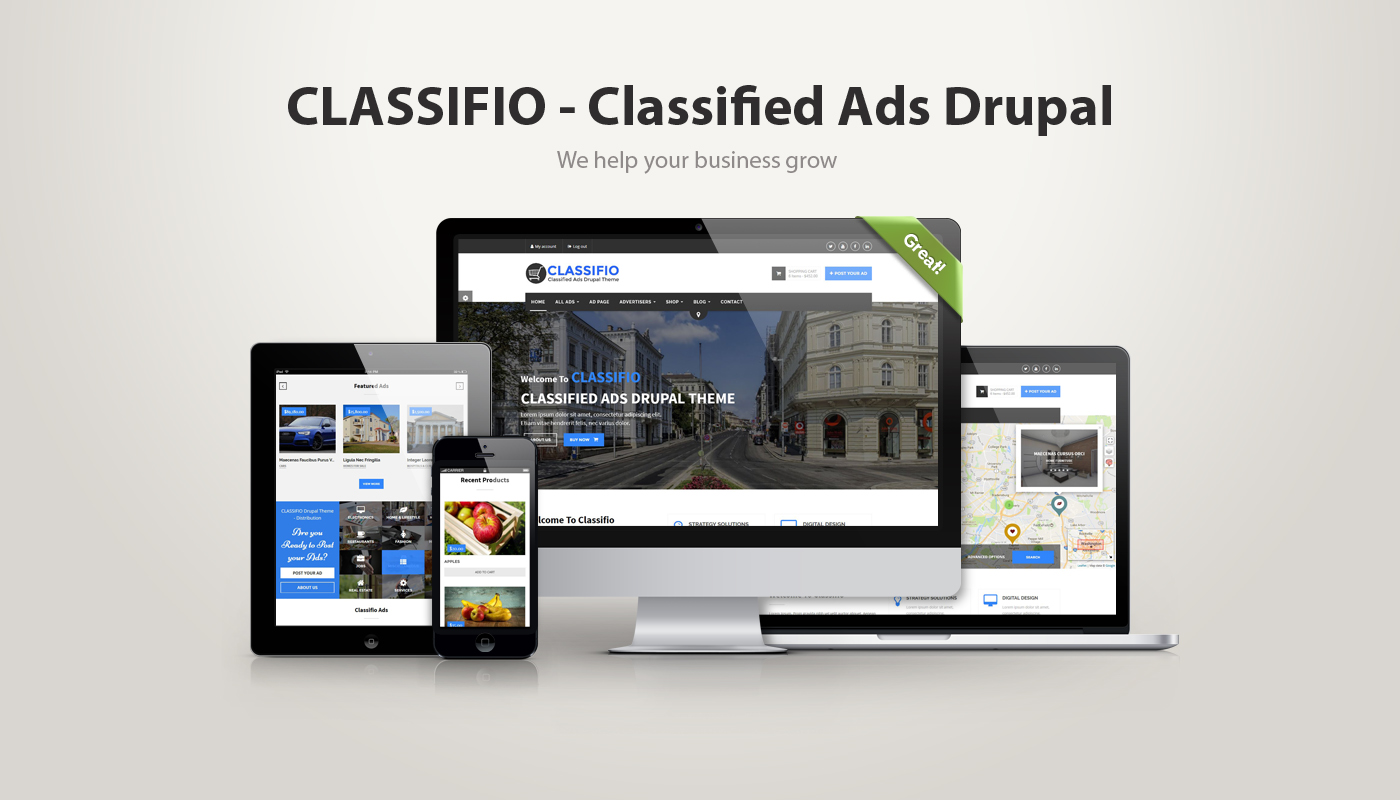 CLASSIFIO is a professional Drupal responsive theme for classified ads, fully manageable and complete responsive for ads objects, categories, shops, and more.
