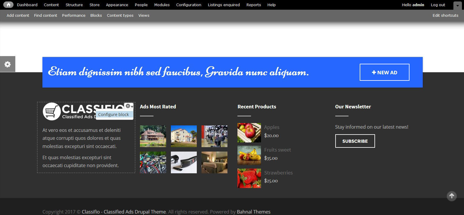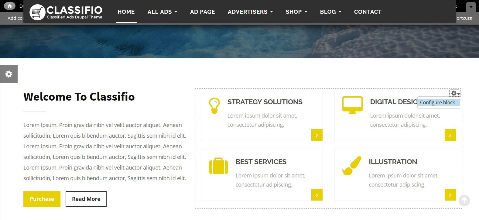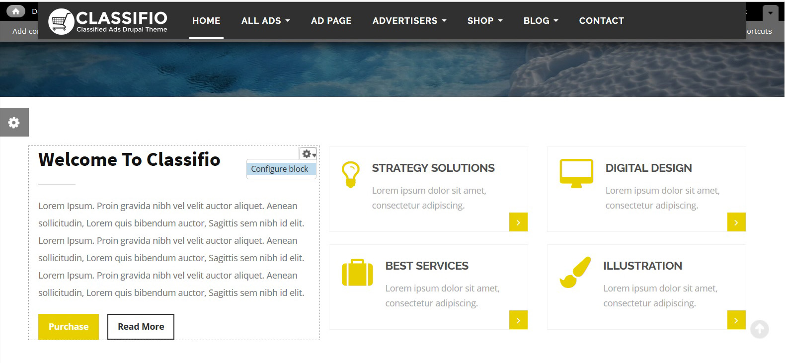 CLASSIFIO is a professional Drupal responsive theme for classified ads, fully manageable and complete responsive for ads objects, categories, shops, and more.
