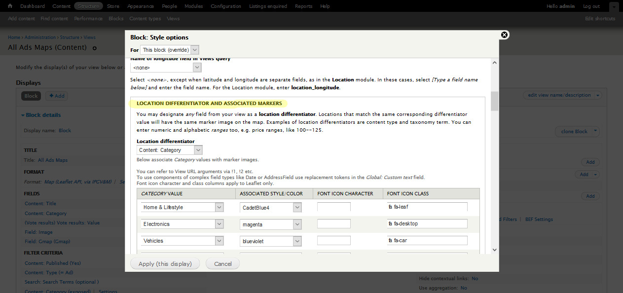3. Scroll down to the section named “Location differentiator and associated markers” and associate each new category to a marker map.