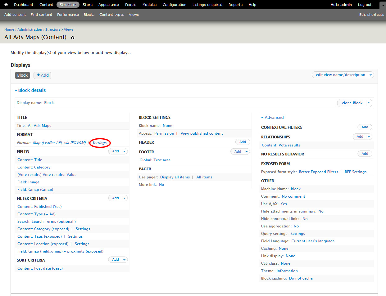 The All Ads Maps is a view block, to edit it: