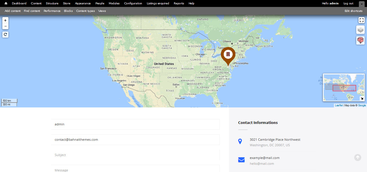 - The map in contact page is displayed by a Contact map content.