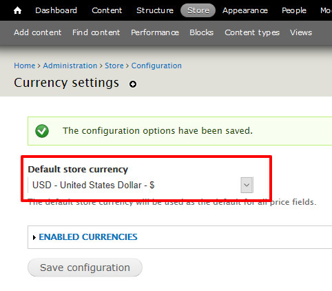 Currency settings