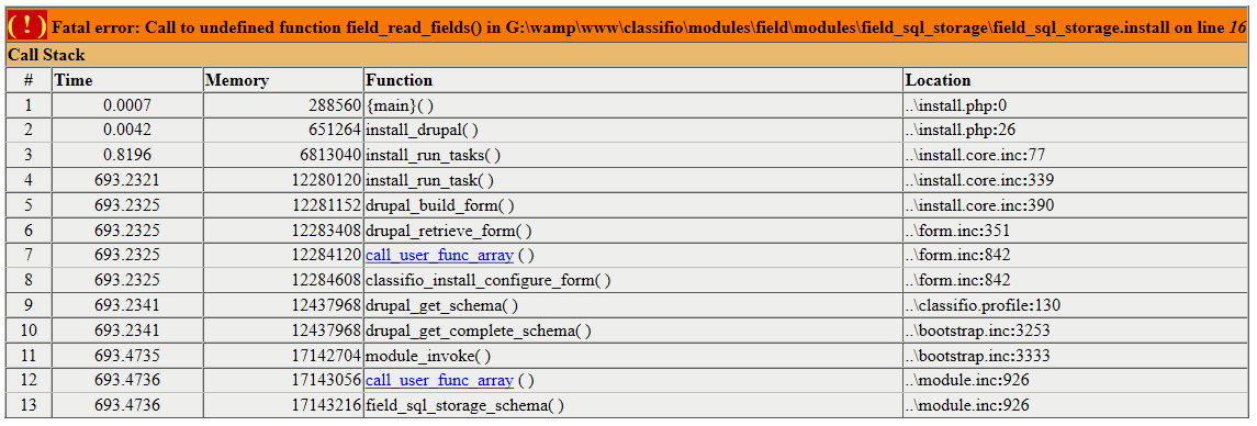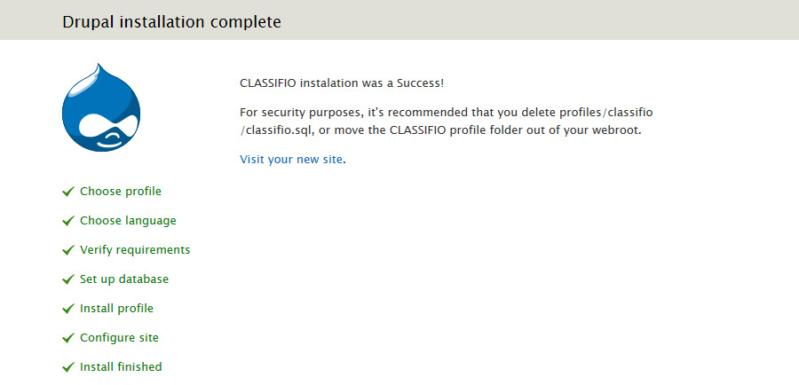 Should any errors occur during the database installation you need to refresh your site at http://example.com/install.php?profile=classifio&locale=en