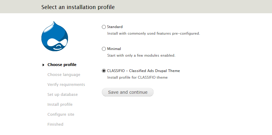 3. Select CLASSIFIO as your installation profile on the "Select an installation profile" page and then click "Save and Continue".